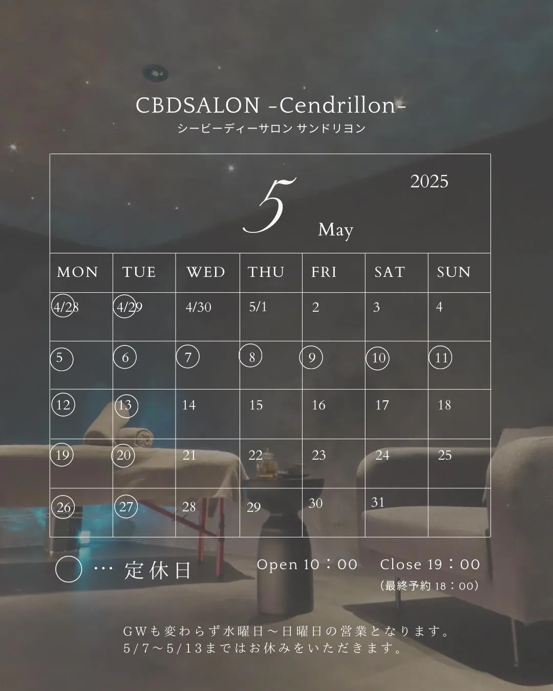 GWは4/30(水)~5/4(日)営業しています💆♀️
